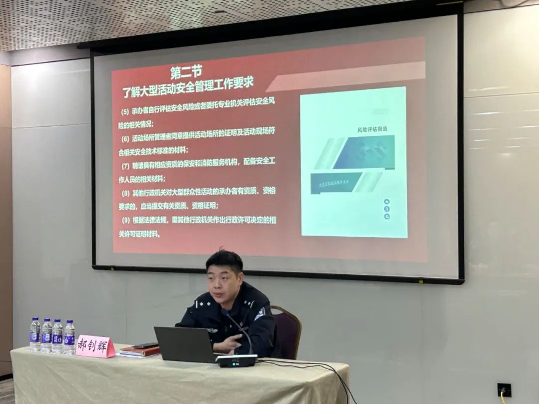 本次会议再次邀请市公安局、市应急管理局进行了相关安全防范知识宣讲,并和与会嘉宾一起分享安全管理会展项目经验,共同探讨会展行业安全管理模式。上海市公安局治安总队大型活动安全管理支队大队长郝钊辉分享了大型活动安全管理工作业务知识要点,重点讲解了大型活动承办者、场地经营者、安全责任人需承担的法律责任,以治安管理者的角度对会展安全管理提出了要求,积极回应了大家对安全监管方面的热点问题,并表示已经在“临时监控”“安保”“安检”“风险评估”“无人机反制”五个方面进行优化,降低大型活动安全管理成本。