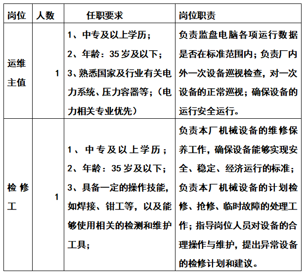 根据工作需要,丰城市天壕新能源有限公司面向社会公开招聘以下工作人员,现将有关事项公告如下: