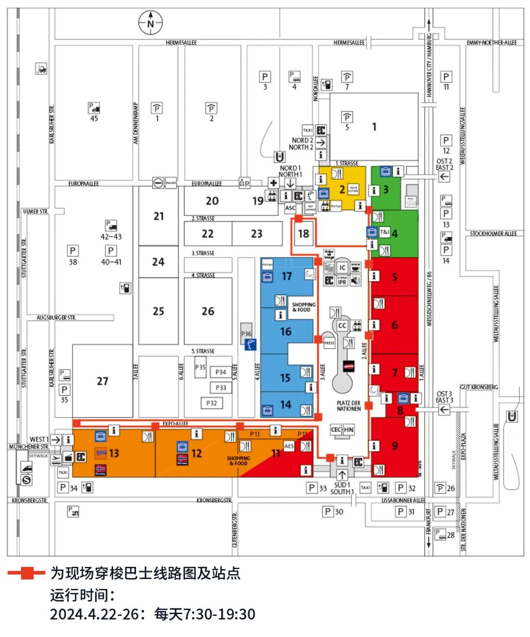 现场展馆穿梭巴士线路图