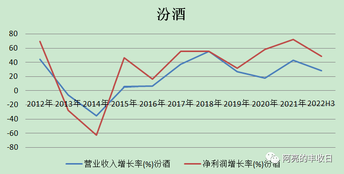 接着,我们再看下汾酒的营收与利润增速情况,如下: