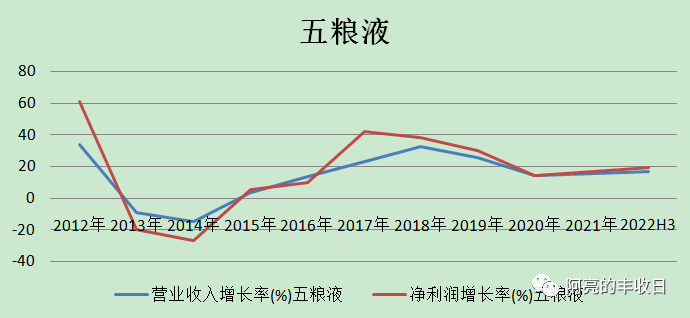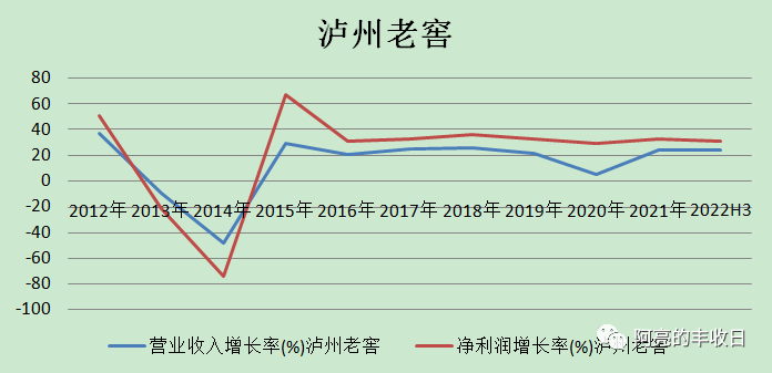看完五粮液,我们再看看泸州老窖,如下图。先看营业增速与净利润增速的情况,如下: