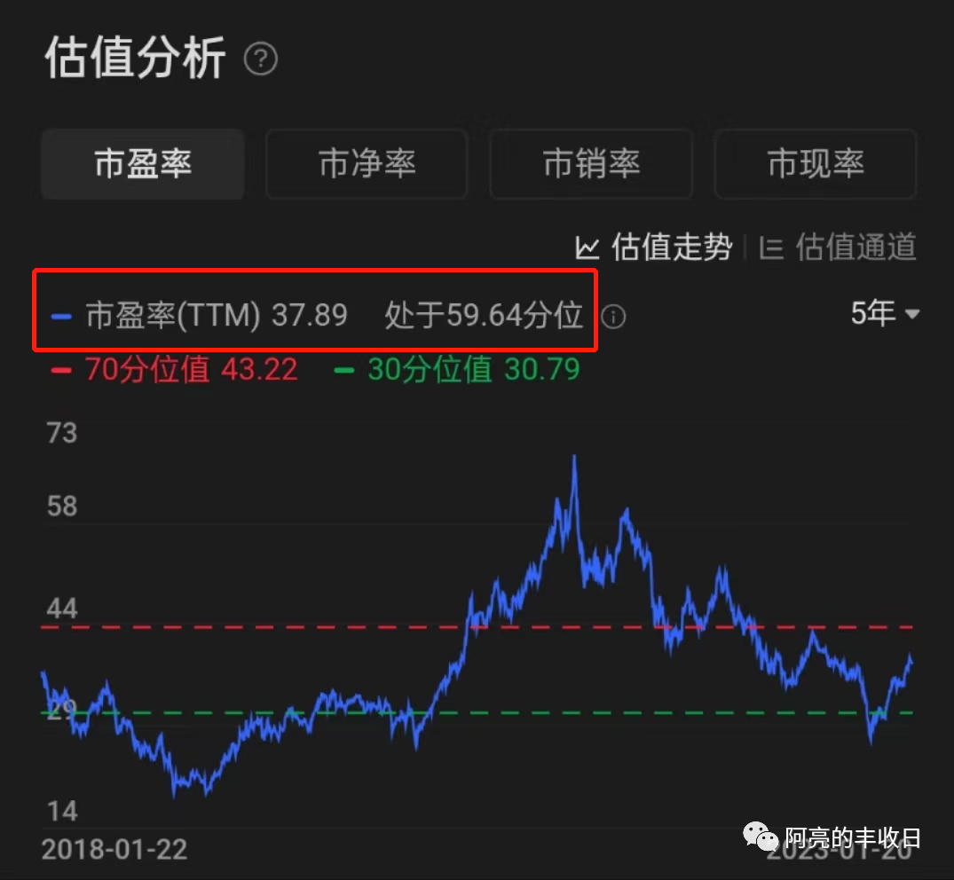 目前估值市盈率为37倍。但目前除了泸州老窖与汾酒,其他的净利润增长率都没有超过30%。估值偏贵。整体来看,处于百分位59.64%。也是偏贵。可以说没有太多的安全边际。