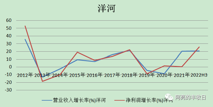 看完汾酒,我们最后再看一下洋河的情况,我们先看洋河的营收与净利润增速情况,如下图:
