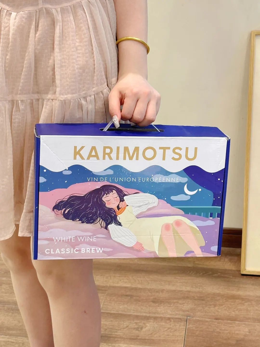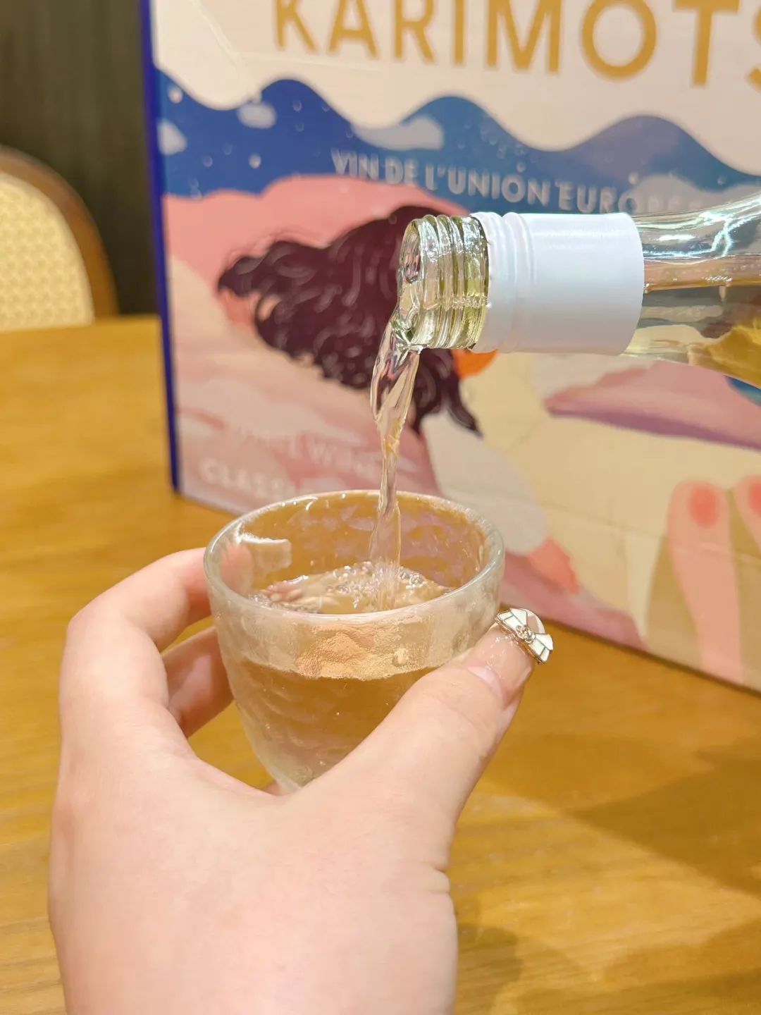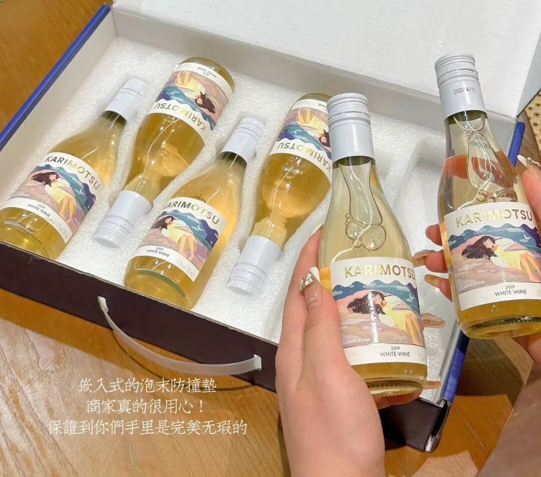 酒瓶瓶身有唯美的插画包装,玻璃瓶身直观酒体颜色,一手在握的瓶身大小,直接对瓶干杯的豪爽。