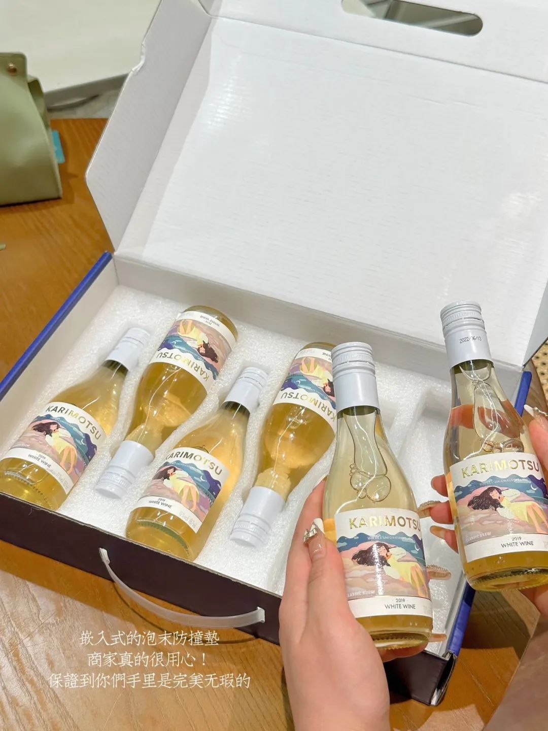 为方便送礼展示,专门定制礼盒,内嵌六瓶冰爽白葡萄酒果,嵌入式的泡沫防撞垫,用心程度尽显拎在手里倍有面儿,酒不醉人的心意更显特别的关怀。