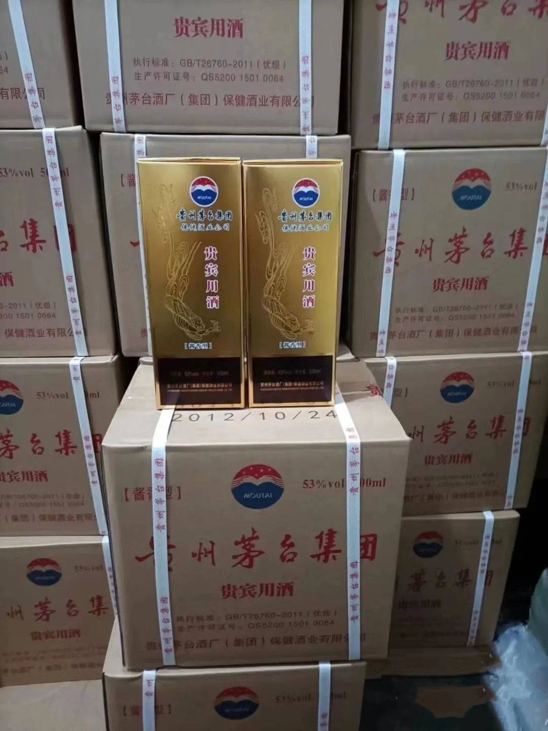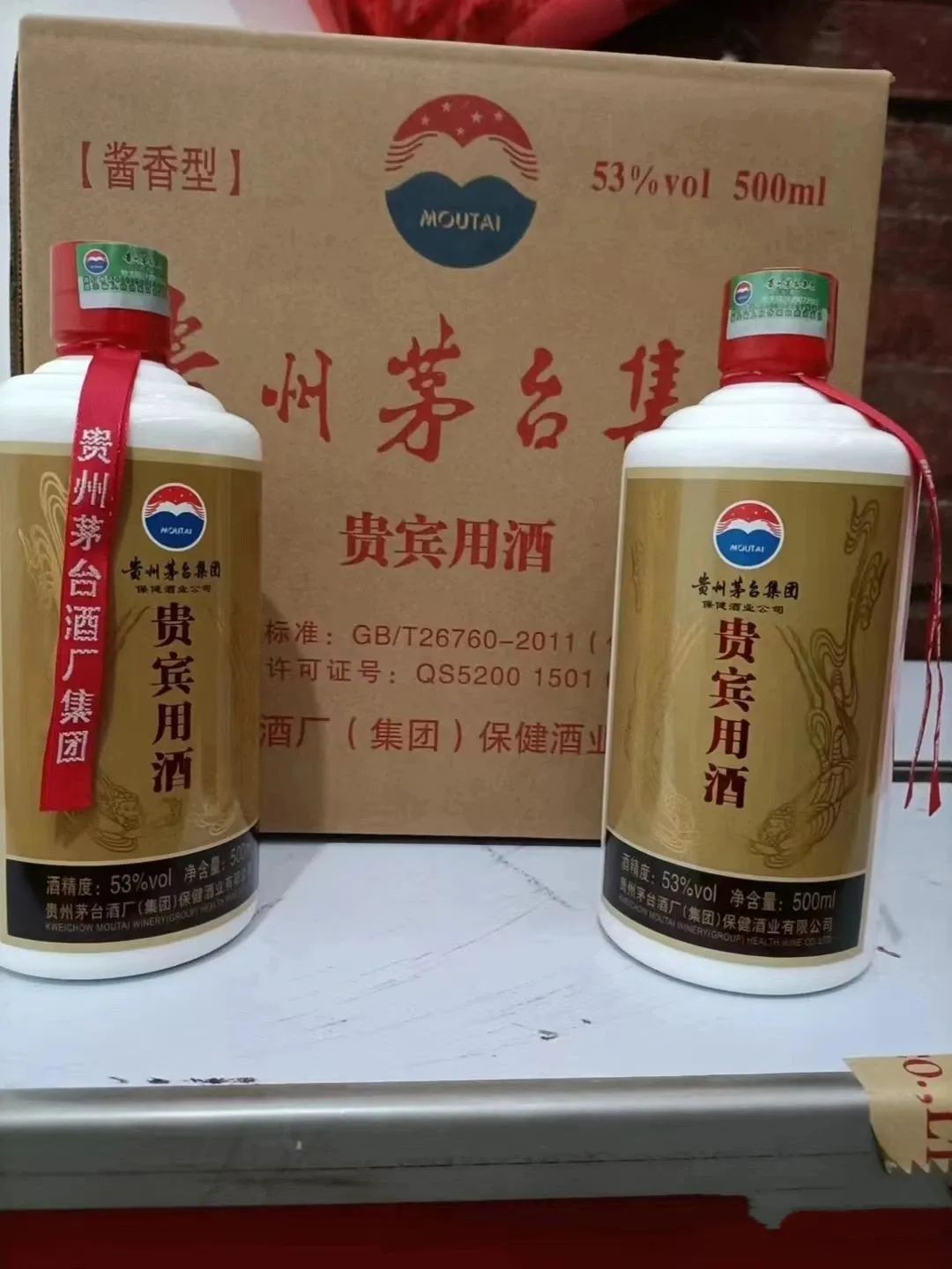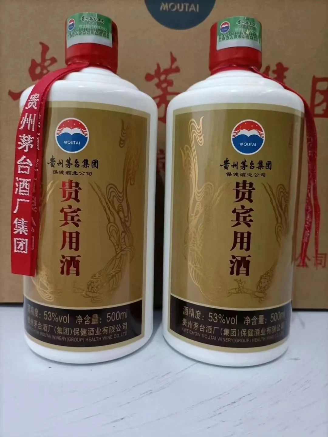 贵宾用酒-是由贵州茅台酒厂(集团)保健酒业有限公司出品,精心挑选茅台镇独有的糯红高粱和冬小麦作为原料,由茅台集团精英酿酒团队全程参与酿造,采用了茅台高超的酿酒工艺12987,两次加生沙(生粮)、八次发酵、九次蒸馏,生产周期极长,酒质和谐醇香,绵软柔和,品质达到了中国白酒的优级,其兼备了茅台酒的独特风格,酱香突出、酒体完美、香气优雅、细腻、味醇厚、协调、丰满、余香舒适、持久、爽净、空杯留香不绝,同时又具有低而不淡、香而不绝、醉而不昏的特点。