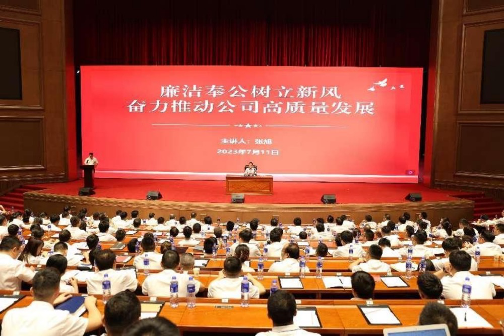 为深入贯彻落实全面从严治党要求,积极践行集团“新风行动”内容要求,提升党员干部员工廉洁自律意识和拒腐防变意识,推动酱香酒公司党风廉政建设走深走实,7月11日,在酱香酒公司2023年半年培训暨营销工作会期间,公司党委书记、董事长张旭同志以“廉洁奉公树立新风 奋力推动公司高质量发展”为主题,为全体党员干部员工讲授党风廉政建设专题党课。