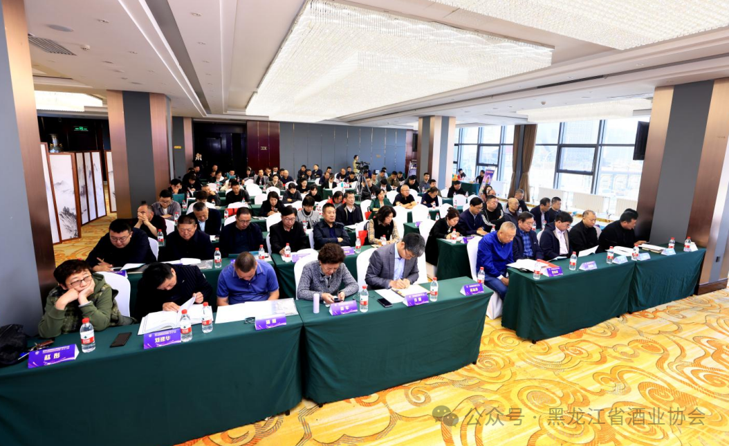 全国著名白酒专家栗永清,黑龙江省轻工业联合会原会长杨柏森、黑龙江省轻工科学研究院院长赵云财、黑龙江省酒业协会名誉会长高军,协会会长赵志昌,常务副会长季树太,《酿酒》编辑部总编赵彤,《中酒融媒》创始人金峰,中国首席白酒品酒师栗伟,著名营销专家北京卓鹏品牌营销咨询有限公司董事长田卓鹏,中酒银河科技有限公司董事长肖照,以及副理事长单位负责人,常务理事单位领导和来自会员企业代表110余人出席了本次会议,会议由秘书长栗岩主持。