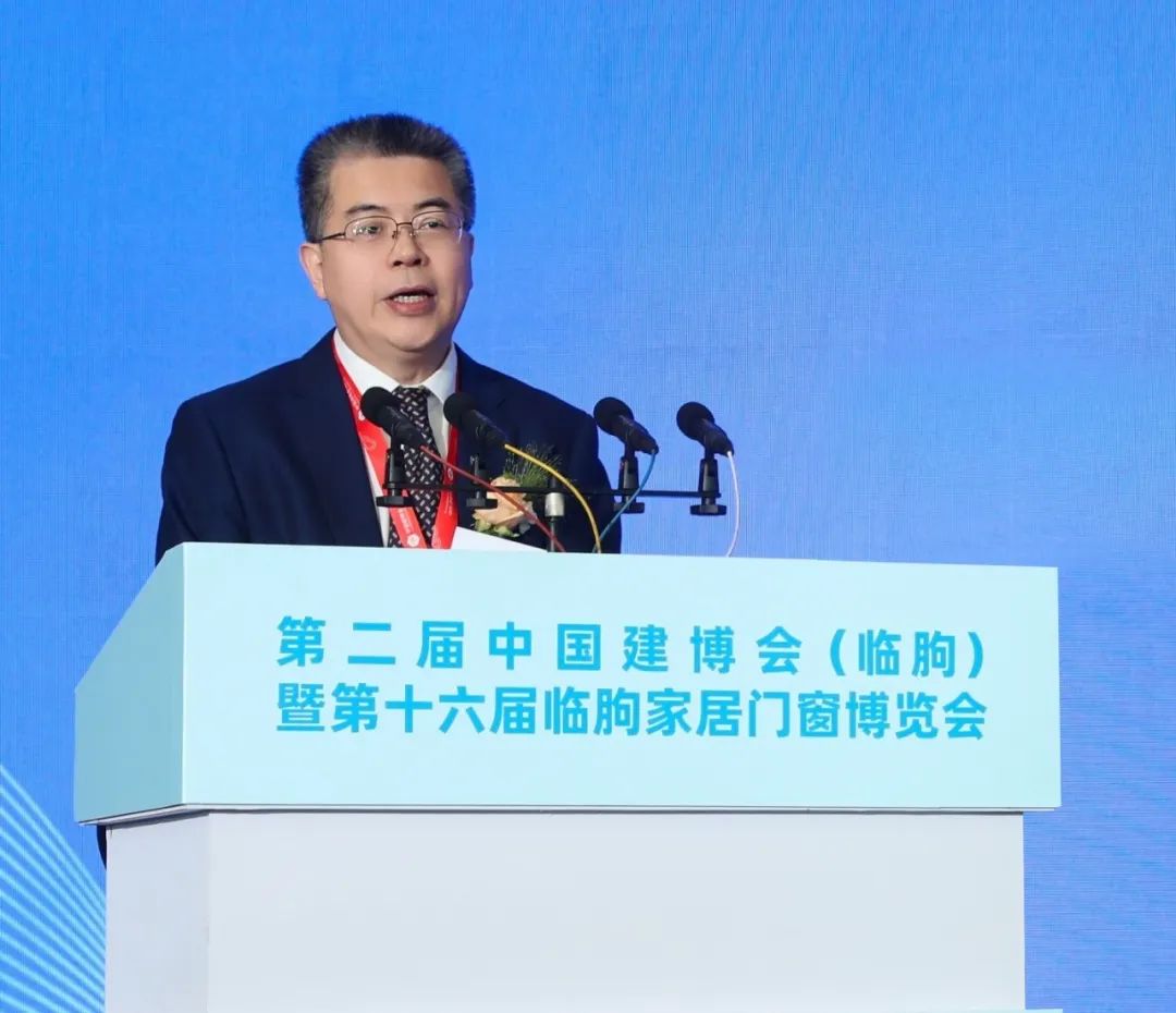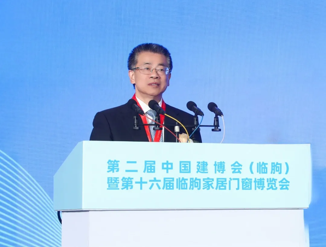 中国建筑材料流通协会会长 秦占学 宣布第二届中国建博会(临朐)暨第十六届临朐家居门窗博览会开幕,与会领导嘉宾共同为博览会开幕剪彩。