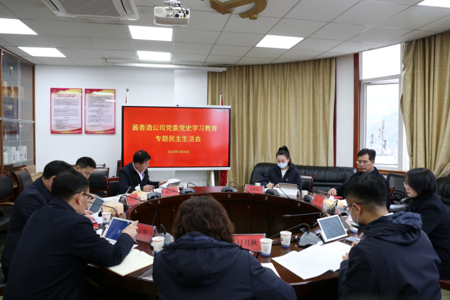 1月20日,根据中央、省委和集团公司党委关于开好党史学习教育专题民主生活会的部署要求,酱香酒公司党委召开党史学习教育专题民主生活会,围绕“以习近平新时代中国特色社会主义思想为指导,深入学习贯彻党的十九届六中全会精神,大力弘扬伟大建党精神,坚持和发展党的百年奋斗历史经验,坚定历史自信,践行时代使命,厚植为民情怀,勇于担当作为,团结带领人民群众走好新的赶考之路”主题,紧密联系工作实际,发扬自我革命精神,深入查摆问题,严肃认真开展批评与自我批评。茅台集团党委委员、副总经理高山出席指导会议并讲话,茅台集团党史学习教育第三巡回指导组代表、酱香酒公司党委班子出席会议。