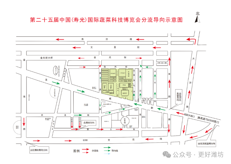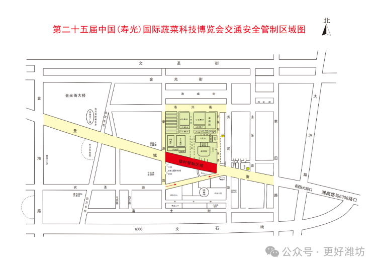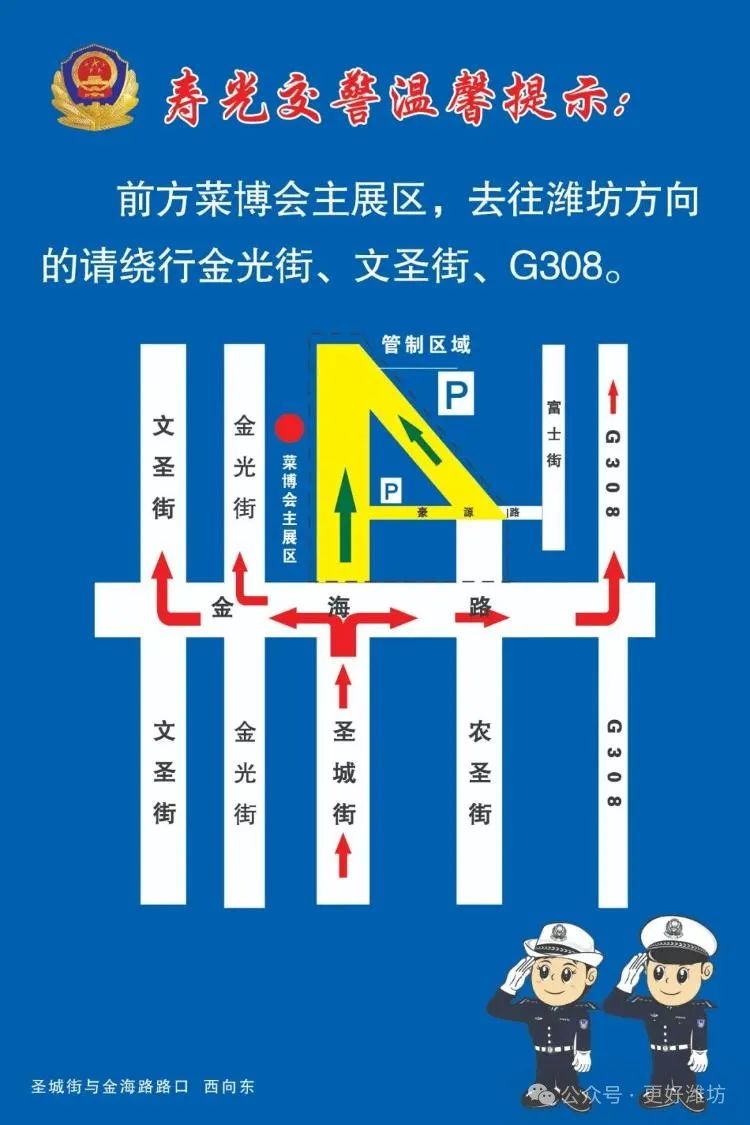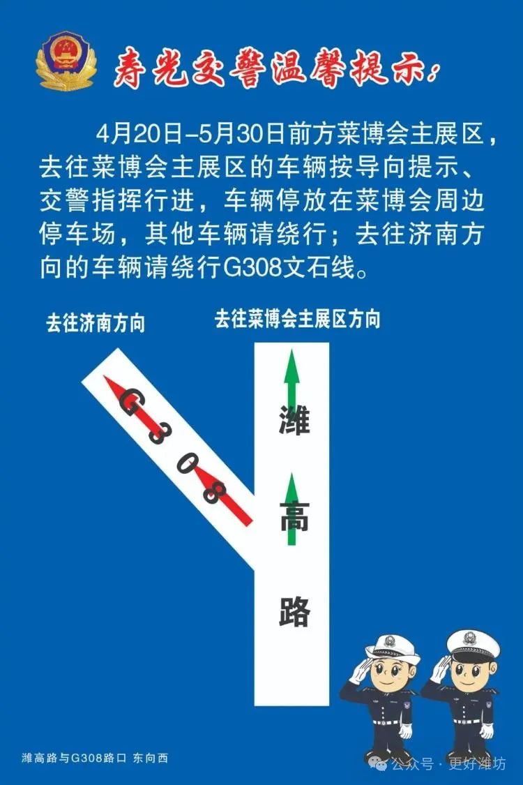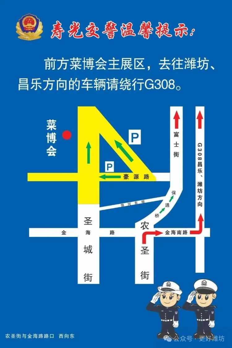 圣城街、农圣街与金海路路口西向东去往潍坊、昌乐方向的车辆请绕行G308。