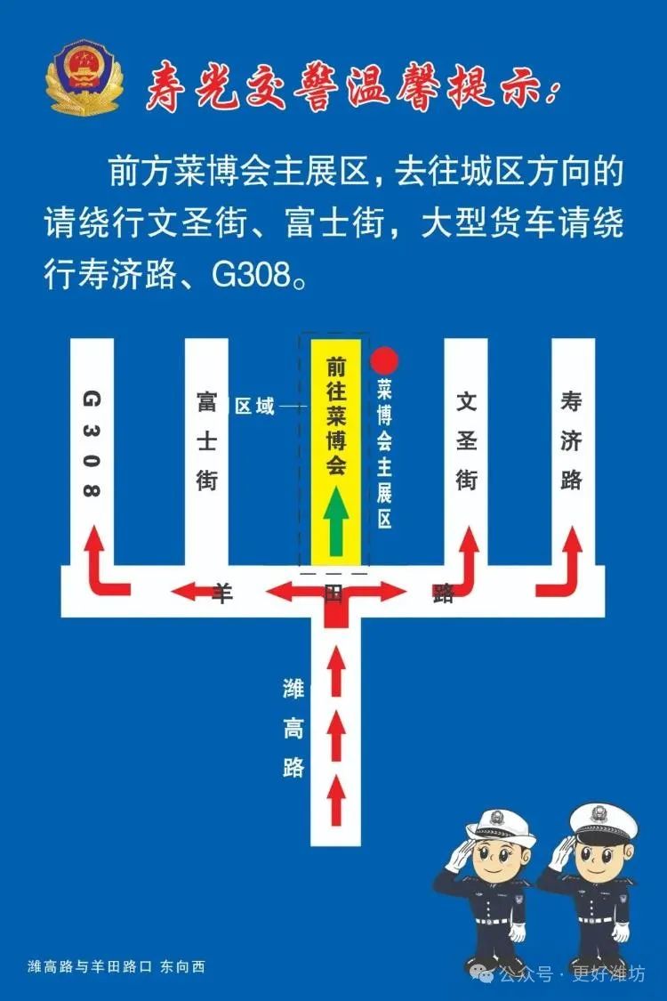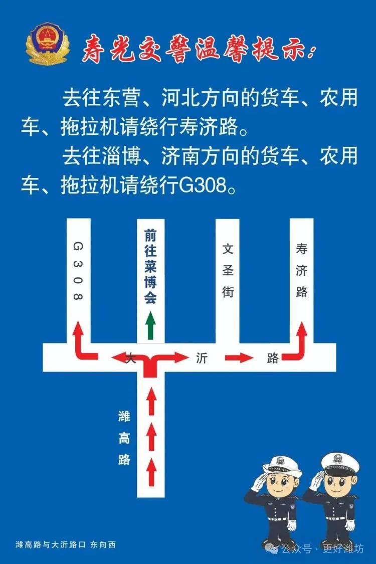 届时,寿光市公安局交警大队将在上述日期内的高峰时段,对圣城街(羊田路口至金海路口)路段、农圣街(圣城街路口至豪源路口)路段、洛兴街(尧河路口至豪源路口)路段、豪源路(农圣街路口至洛兴街路口)路段实行交通管制。同时,城区内以及圣城街金海路路口至农展馆东路口路段,禁止大中型货车通行。