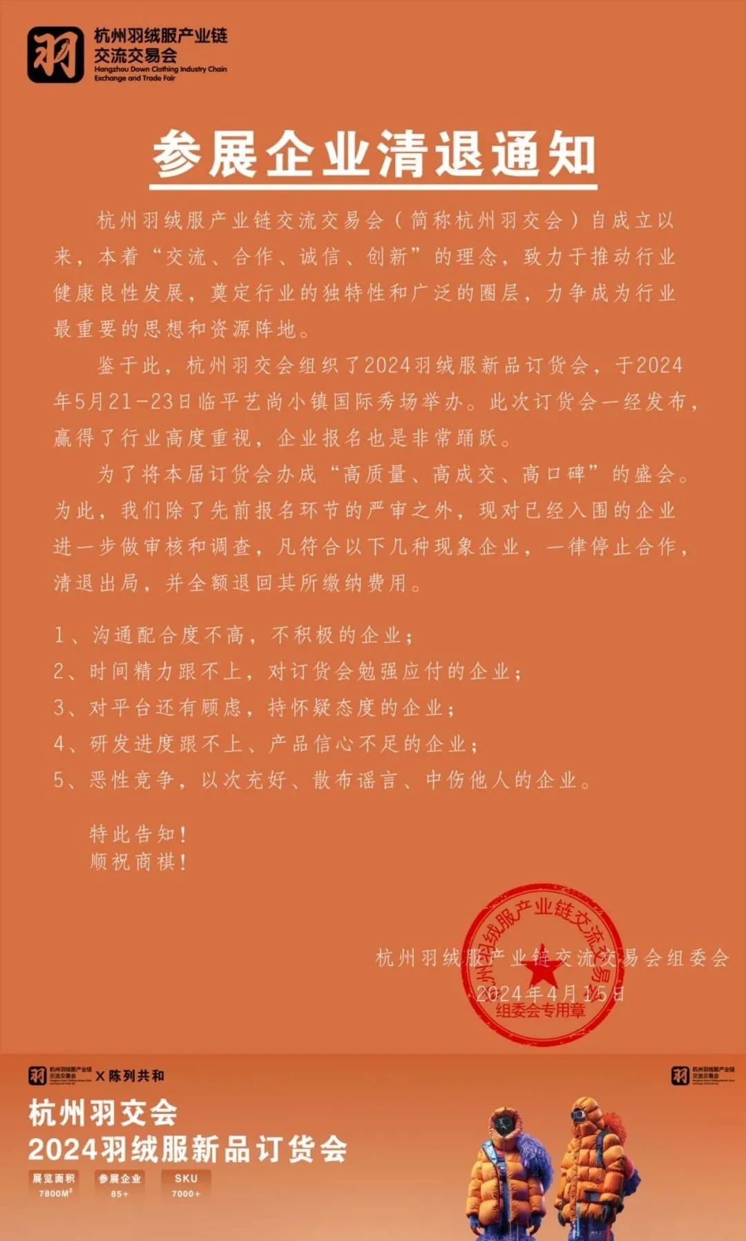 鉴于此,杭州羽交会组织了2024羽绒服新品订货会,于2024年5月21-23日临平艺尚小镇国际秀场举办。