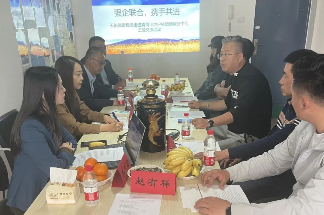 2024年4月17日上午,天佑德青稞酒公司走进青海山地户外运动服务中心,开展以“强企联合,携手共进”为主题的交流活动。