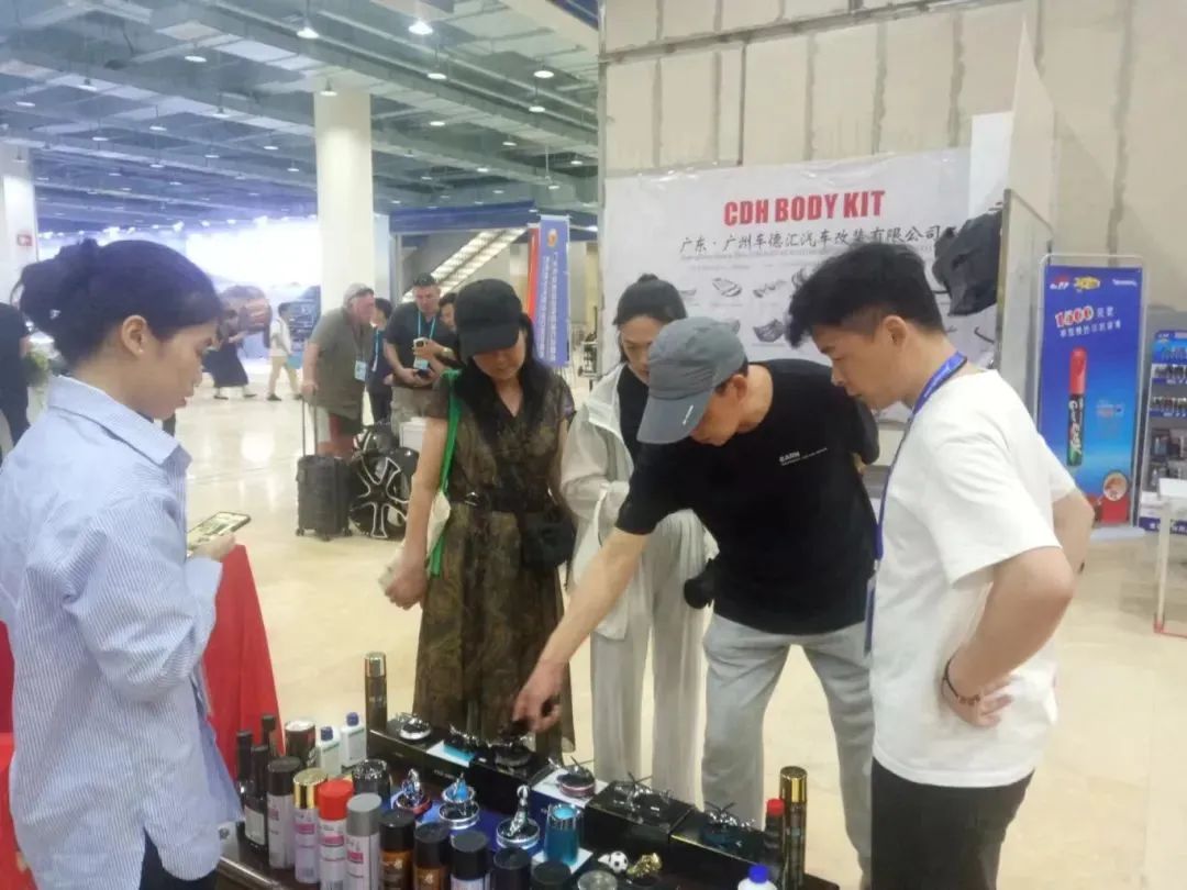 本次车品出口展参展的产品囊括了汽车电池、汽车防爆膜、汽车包围内外饰件碳纤改装件、汽车补漆笔、汽车香水香熏、行车记录仪、汽车下护板、脚垫、尾箱垫、汽车清洗枪、清洗喷头喷壶、表板蜡和喷漆用品、清洁用品、汽车LED车灯等等。