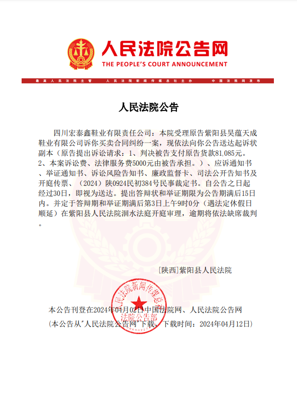紫阳法院通知你出庭应诉