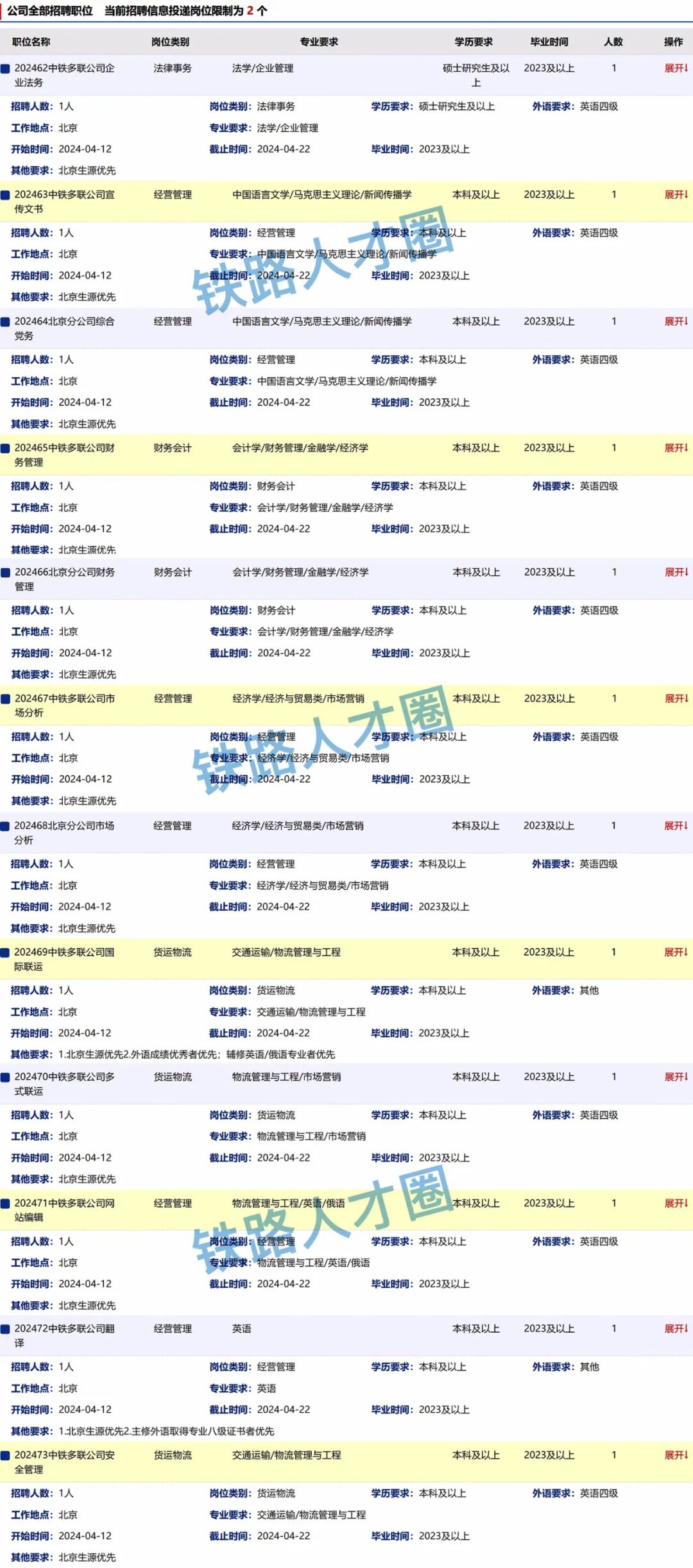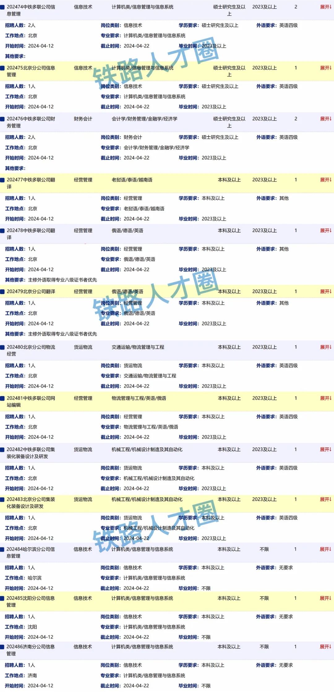 1、38人!中铁集装箱运输有限责任公司2024年度招聘普通高校毕业生公告 (第二批次)(4.22)