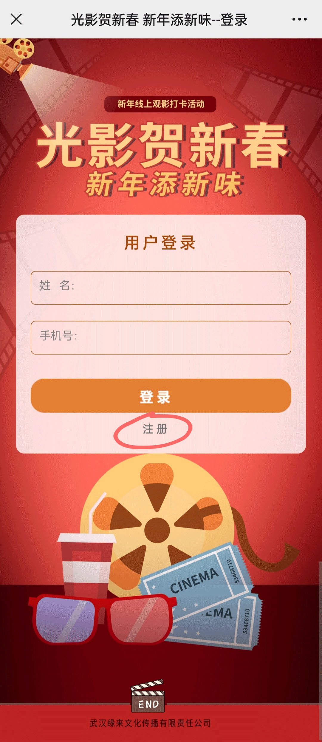 ❶ 参与者需准确填写信息完成注册,观影打卡记录以姓名和手机号为准。