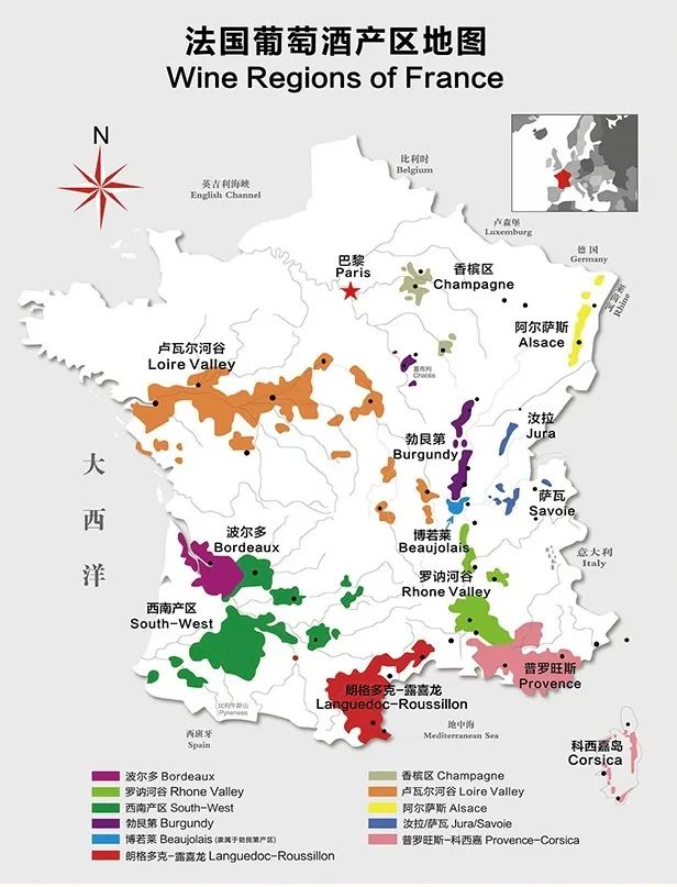 上篇推文我们探访了法国北部的香槟区、阿尔萨斯、卢瓦尔河谷、勃艮第和博若莱五大产区,接下来,我们继续走进这片充满浪漫气息的土地,其中包括被誉为“世界葡萄酒之都”的波尔多,以及让无数人魂牵梦绕的普罗旺斯,通过下面这张《法国葡萄酒产区地图》,快速领略法国十大葡萄酒产区的经典魅力!