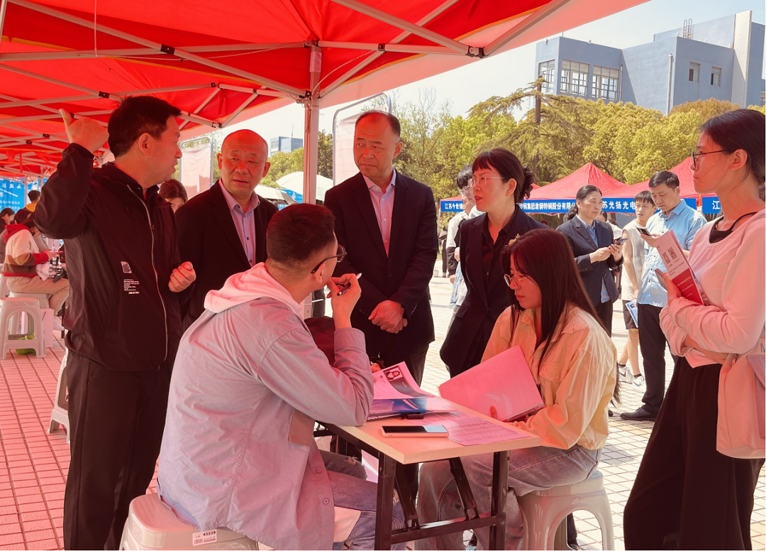 随后,参加座谈的一行人观摩了宿州经开区蚌埠学院专场招聘会,现场开元制药(安徽)有限公司、安徽紫金新材料科技股份有限公司、新宇药业股份有限公司等22家经开区企业集中参与招聘,提供了近400个工作岗位,招聘人员以生物、化学、药学、电气自动化、设备自动化、电气工程等相关专业等为主,吸引了众多校内应届毕业生。高质量的招聘岗位极大调动了毕业生的应聘热情,学生与经开区招聘企业深入互动,企业代表纷纷表示,此行人才招揽收获满满,应聘的学子们对有机会到宿州经开区重点企业工作,表示充满期待。