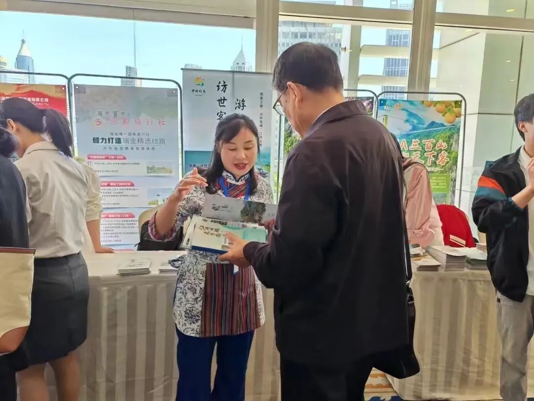 经市政府驻上海联络处牵线对接,赣州市组团首次参加上海旅游销售洽谈会。在专场活动上,赣州文广新旅局党组成员、副局长夏涵涵对赣州文旅资源做了综合介绍,赣州旅投集团、瑞金文旅集团、龙南虔途国际旅行社、安远三百山景区和大余丫山景区等单位分别在会场设立了文旅产品展位并做专题推介。