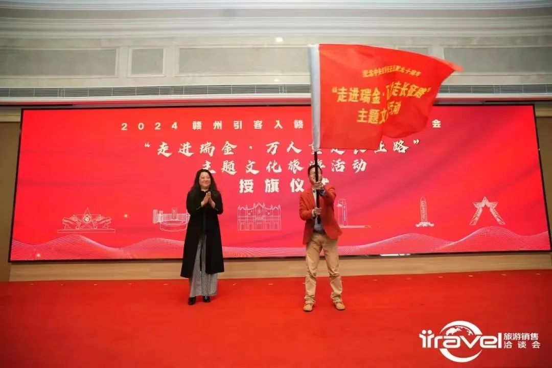 4月18日,赣州市人民政府驻上海联络处主任张琳出席在上海大剧院举行的第36届上海旅游销售洽谈会赣州专场活动,并为2024赣州引客入赣(上海)推介会——"走进瑞金·万人重走长征路"主题文化旅游活动首发团授旗,带动万计“沪客入赣”。上海市超过三百家旅游机构及江苏、浙江、山东等省旅游机构派员参会。联络处副主任李建军、四级调研员宋跃生参加相关活动。
