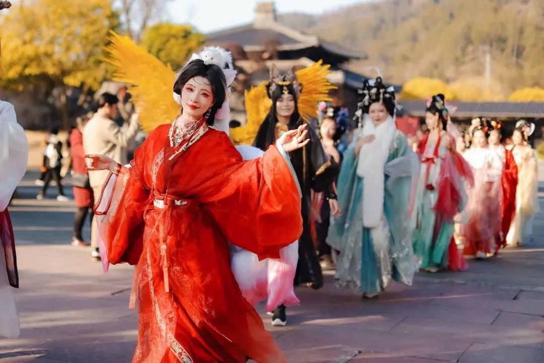 穿着华丽汉服的巡游队伍