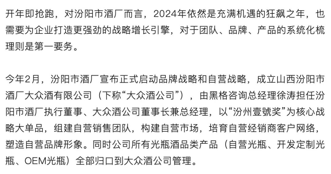 成立大众酒公司发力自营、推动六大战略转型,汾州酒瞄准大众酒赛道的“长跑冠军”