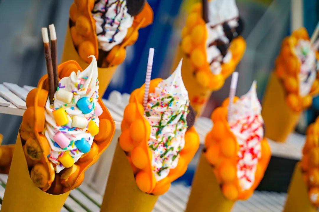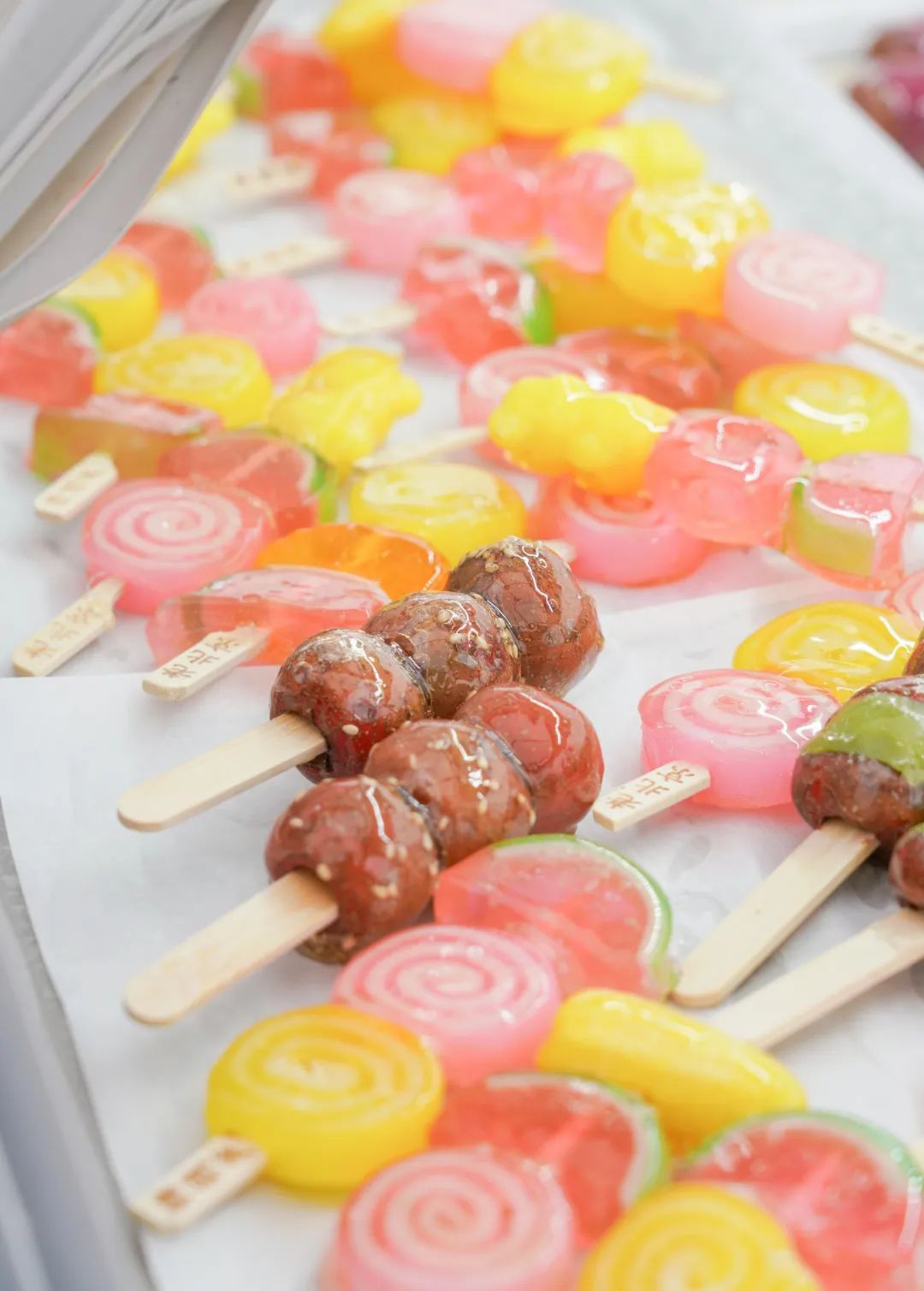 没问题!特色烧烤、蛋仔冰激凌、台湾奶茶等特色美食应有尽有,想吃什么老爸给你们买!