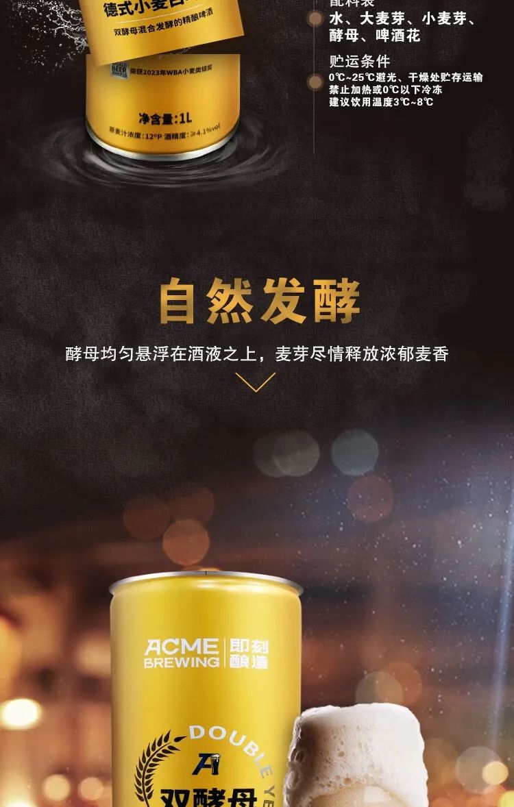 ACME BREWING 精酿啤酒原浆 德式小麦精酿啤酒白啤1L/罐鲜酿听装 1L 6罐 组合装 (整箱发货) 即刻酿造 酒厂直发