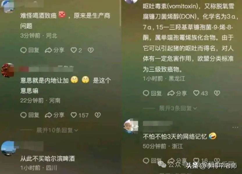 农夫山泉不搭理你们这群减重,你们又瞄上哈尔滨啤酒了,hk那边出来个检测报告,又让你们高潮了,啊?!有呕吐毒素?又坑我们国人?还tm国货?赶紧倒闭吧!!