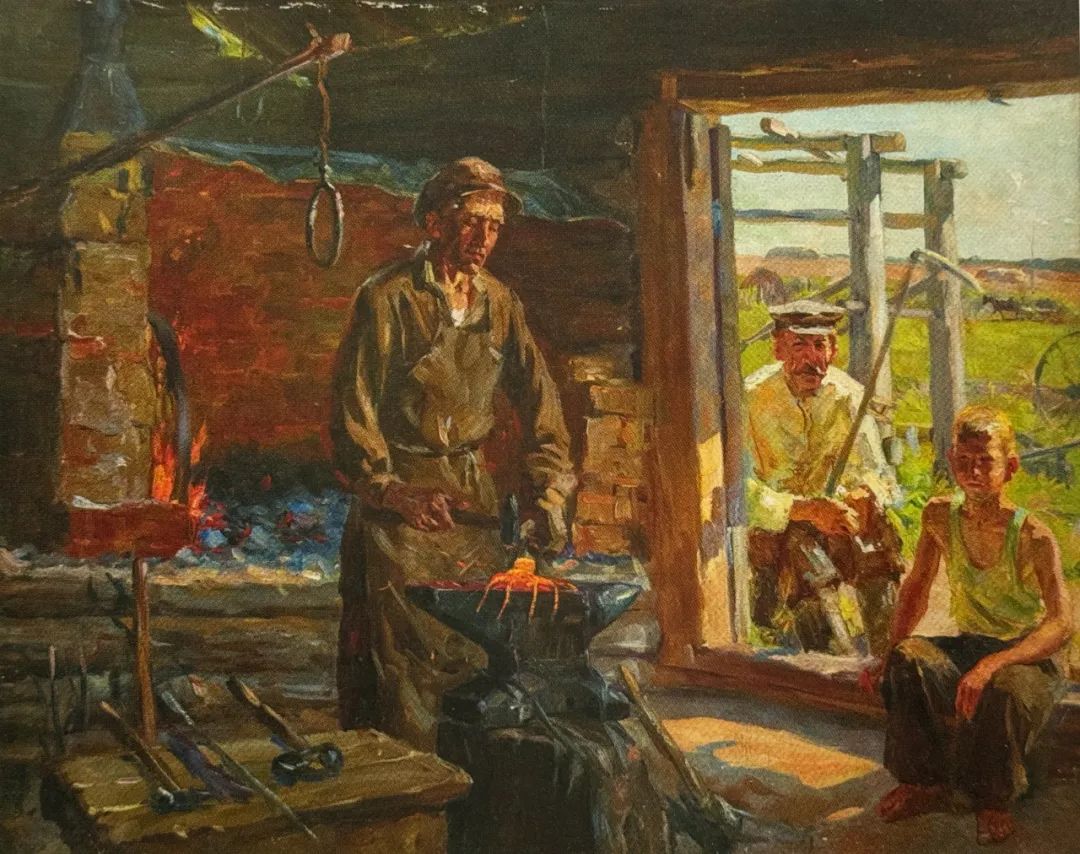 《农村的铁匠铺》戈尔巴托夫·米哈伊 78.5cm×99.5cm 布面油画 1959年