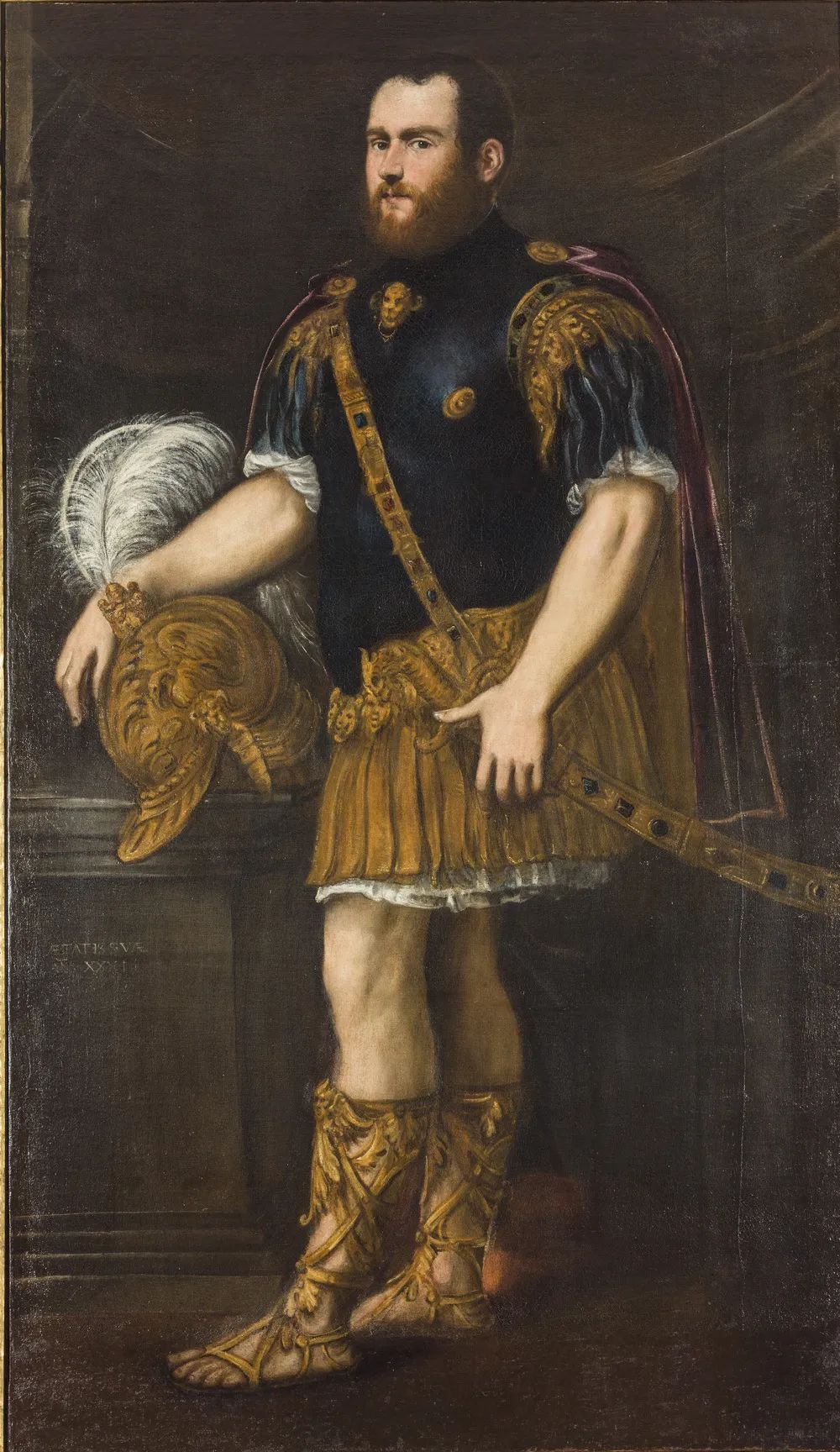 《穿古代盔甲的指挥官》丁托列托220x120cm 布面油画1545年