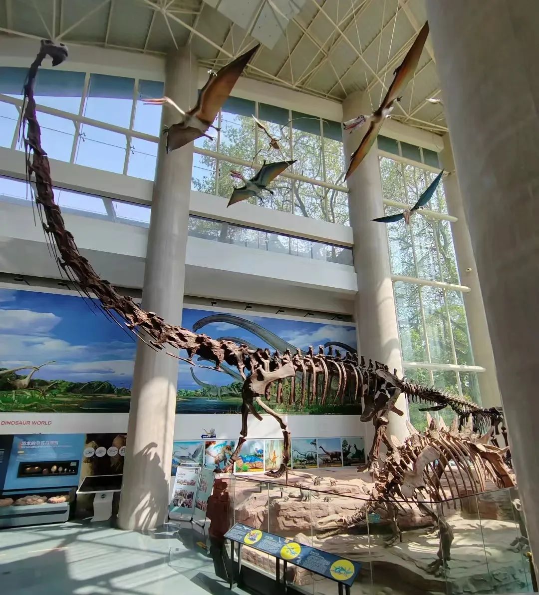 馆内收藏了一大批珍贵的地质标本,《恐龙世界》展厅装架展出了杨钟健先生在抗战时期发现的3具恐龙真骨化石,并陈列有亚洲最大的恐龙之一——炳灵大夏巨龙。