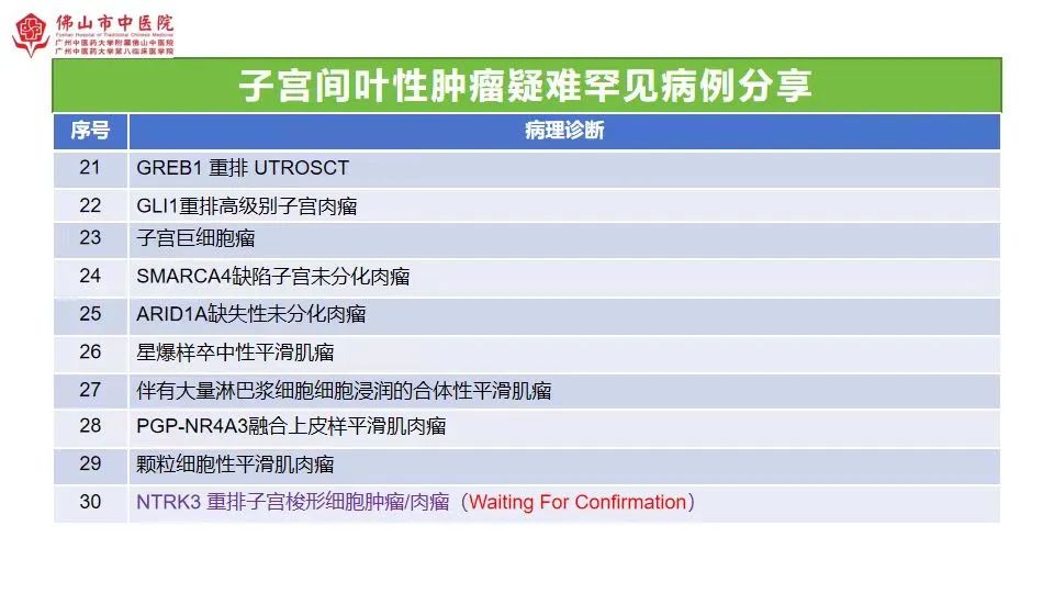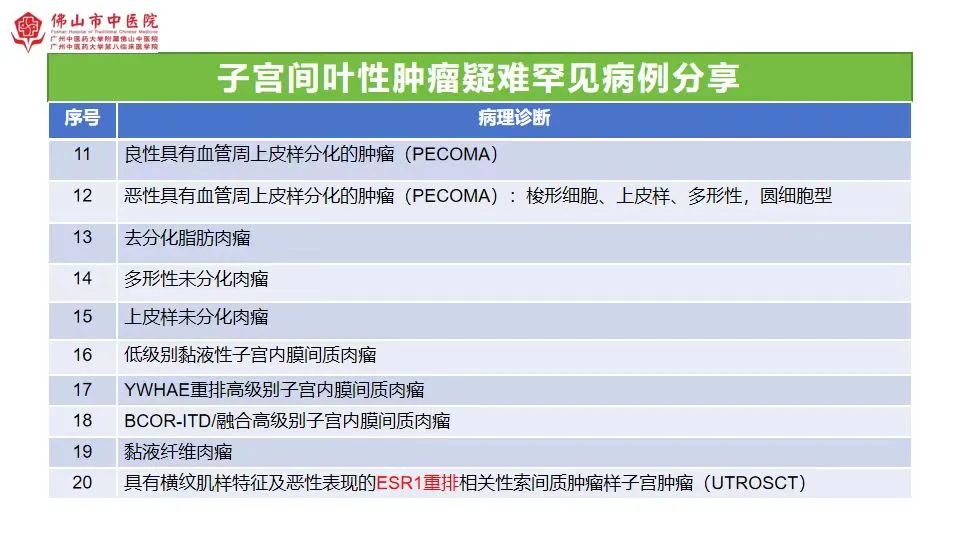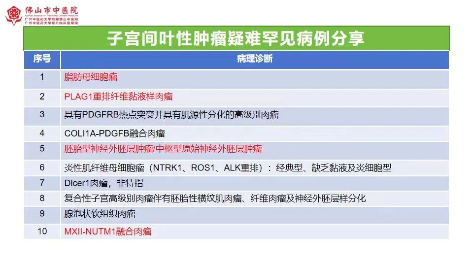 在妇科病理专场,关于“子宫疑难罕见间叶性肿瘤病理诊断及鉴别诊断”的演讲中,我院展示了30种疑难罕见且容易误诊的病种。既有罕见的良性病变,也有诊断极其困难的恶性间叶性肿瘤。毛荣军从形态学、免疫组化及分子特征进行详细分析,获得了同行阵阵认可的掌声。