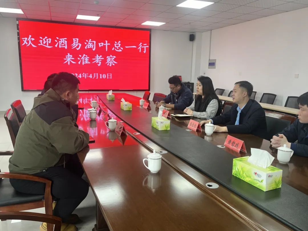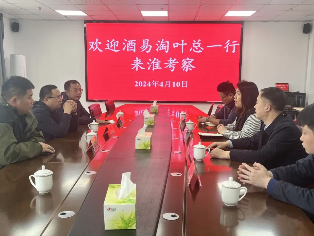 4月10日,江苏酒易淘集团董事长叶平、总经理周成、运营总监徐明等一行赴淮安市淮安区电商现代物流园开展考察交流活动。淮安区区委副书记朱书文、苏嘴镇镇长陈金旭、淮安区数字中心主任侯晓萍等陪同考察并举行座谈会。