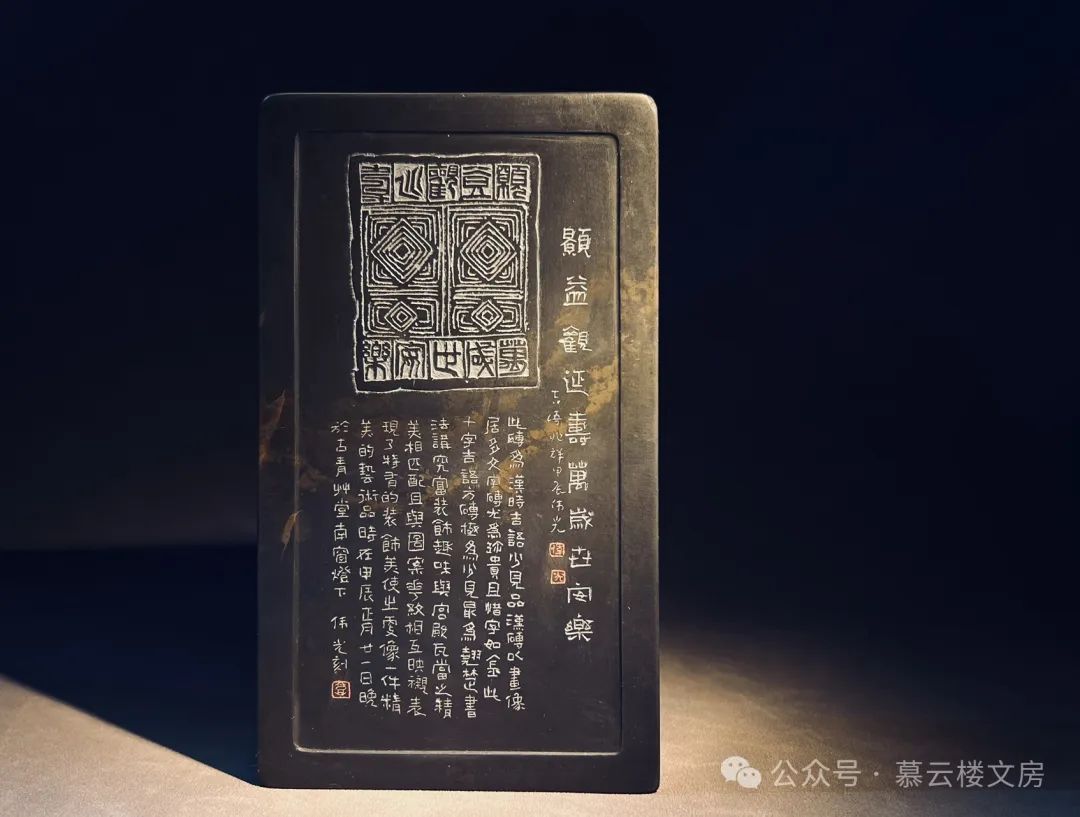 作者:伟光此砚取材洞子沟老坑淄石,石质**。砚作四直规矩形,堂阔池深便于研磨和蓄墨,四周边线劲挺刚柔相济。背刻古文字砖并加以题跋,章法和谐有度书刻俱佳。侧刻大篆“意与古会”古意十足。此砚厚重大方气局开张,且实用与文气兼得,不失为文房可宝之器。慕云楼《独逸》砚