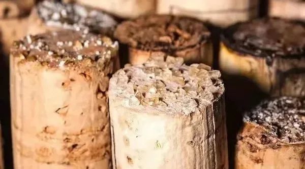凝结在橡木塞底部的晶体沉淀物——酒石酸盐