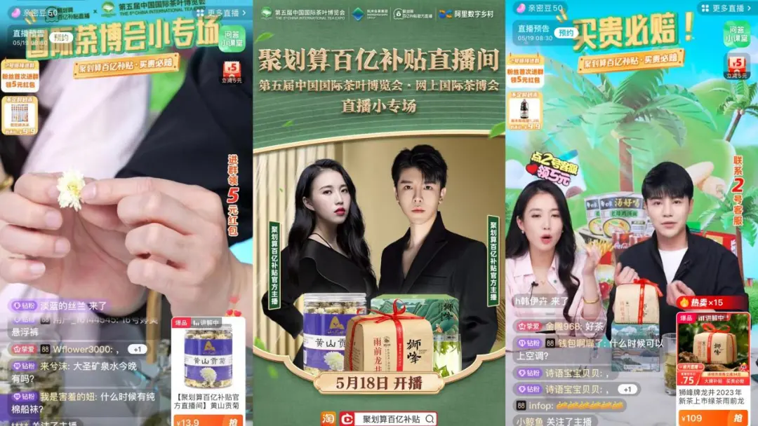 2023年第五届中国国际茶叶博览会上,近900家中外参展茶企带来万余种产品,专业采购商4200余人,参观人流达14.2万人次。期间,“新青年·新茶饮”展区联合天猫、阿里数字乡村,借助大数据甄选年轻消费者喜爱的品牌和产品,不仅赢得众多80、90、00后的青睐,也让不少传统茶饮爱好者跃跃欲试;此外,网上国际茶博会线上分会场——“数字新青年·宝藏新茶饮”专区,举办线上直播专场,开展茶产品网上促销,线上浏览量超过1600万人次,销售额达550万元。