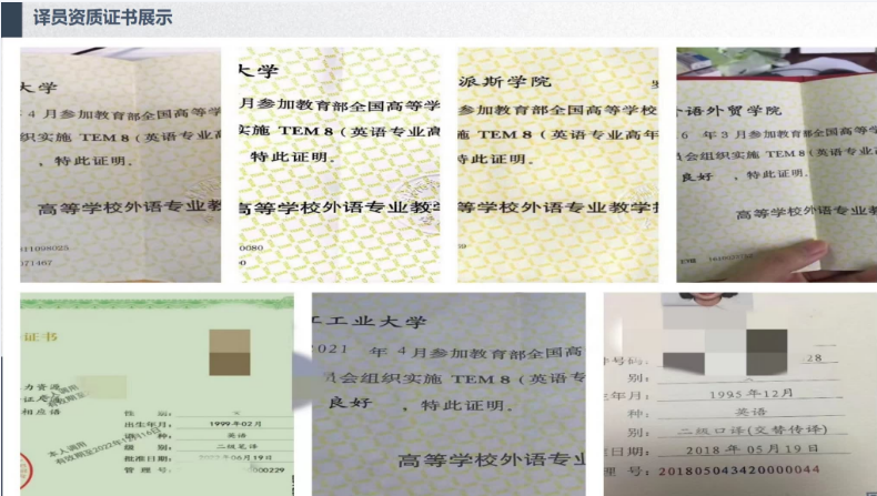 现有译员90%拥有专八,CATTI等证书,可翻译