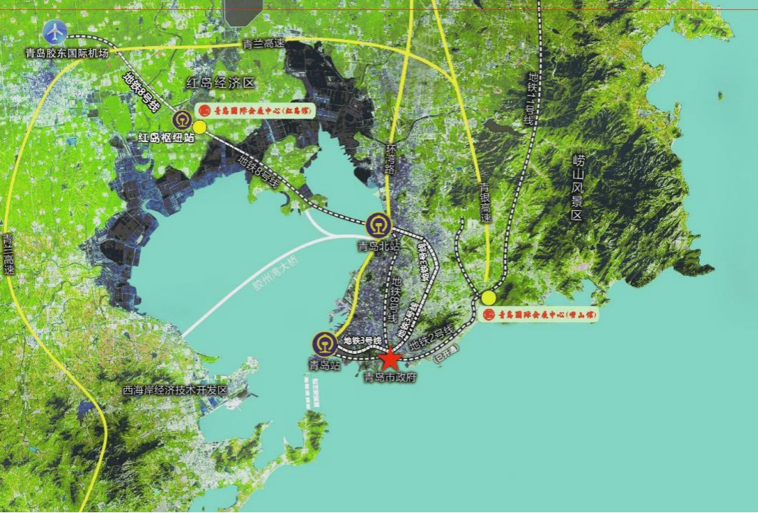 其中,崂山馆在青岛市崂山区市内繁华区域,是东部主城区唯一大型专业展馆,室内外展览面积近10万平方米,拥有3000人的会议大厅和45个中小型会议室。区域内部配套酒店共3家,客房数627间。
