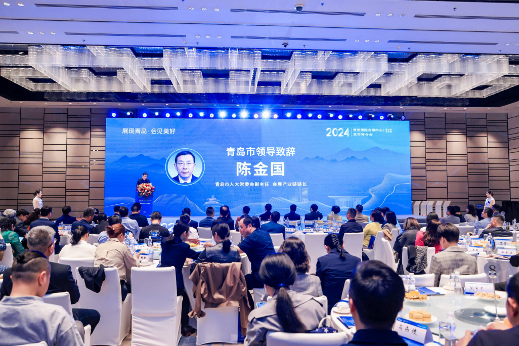 青岛市人大常委会副主任、会展产业链链长陈金国发言,青岛市贸促会会长张磊娜出席。