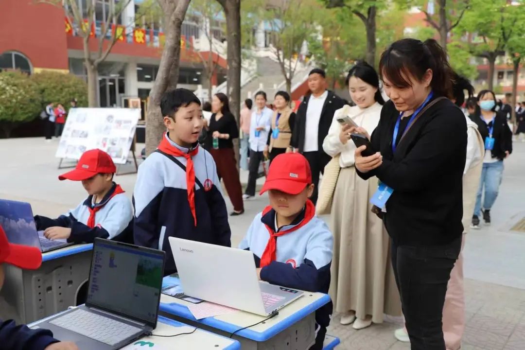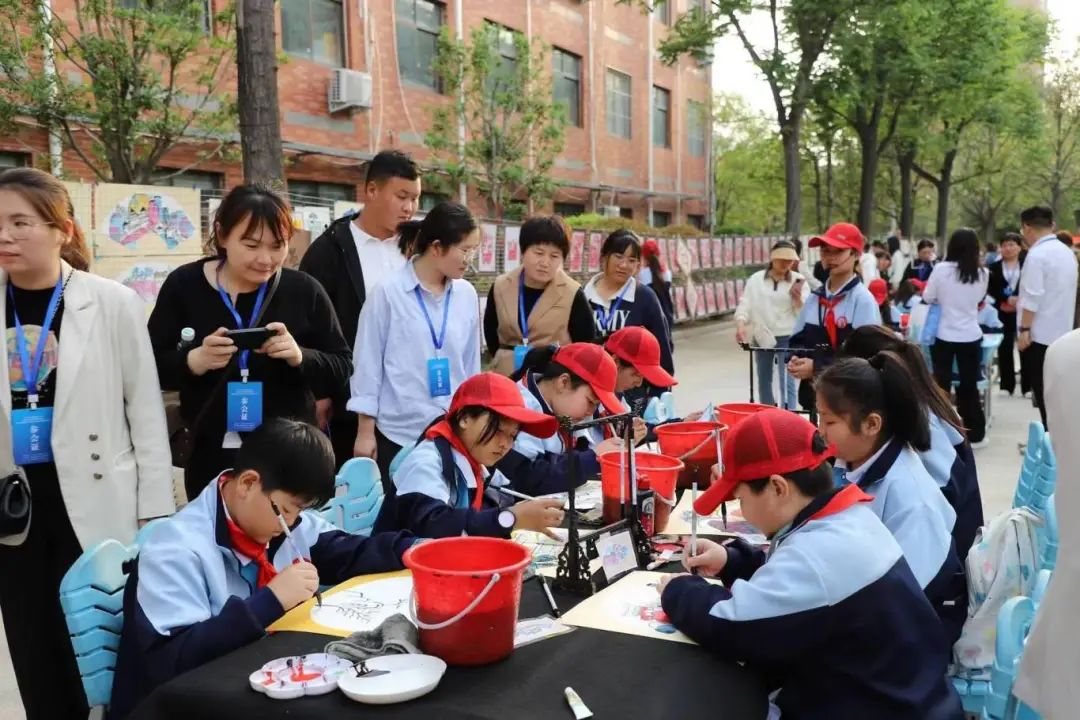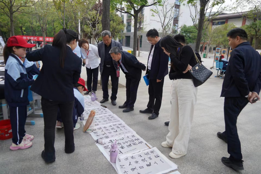 4月20日下午课博会参会人员观摩我校社团成果展示活动。球类、武术、音乐、舞蹈、书法、绘画、雕刻、编程等社团展区前人头攒动。参会人员被丰富多彩的社团活动和学生的独特解说吸引,或驻足观看,或认真交流,兴致盎然。