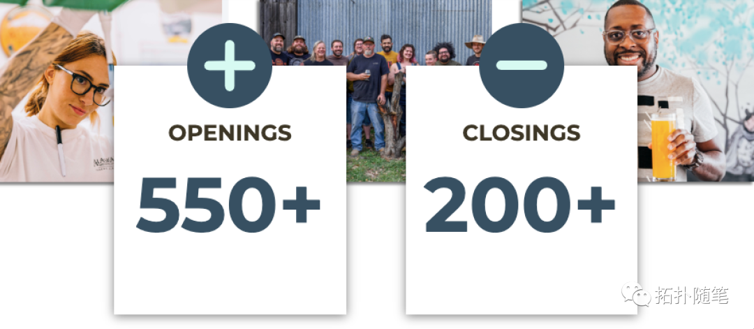 2022年美国的啤酒厂、酒吧和餐厅持续呈现漫长且不稳定的复苏态势。2022年美国运营中的啤酒厂数量为9500家,一年时间中新开酒厂数量超过550家,关闭超过200家。