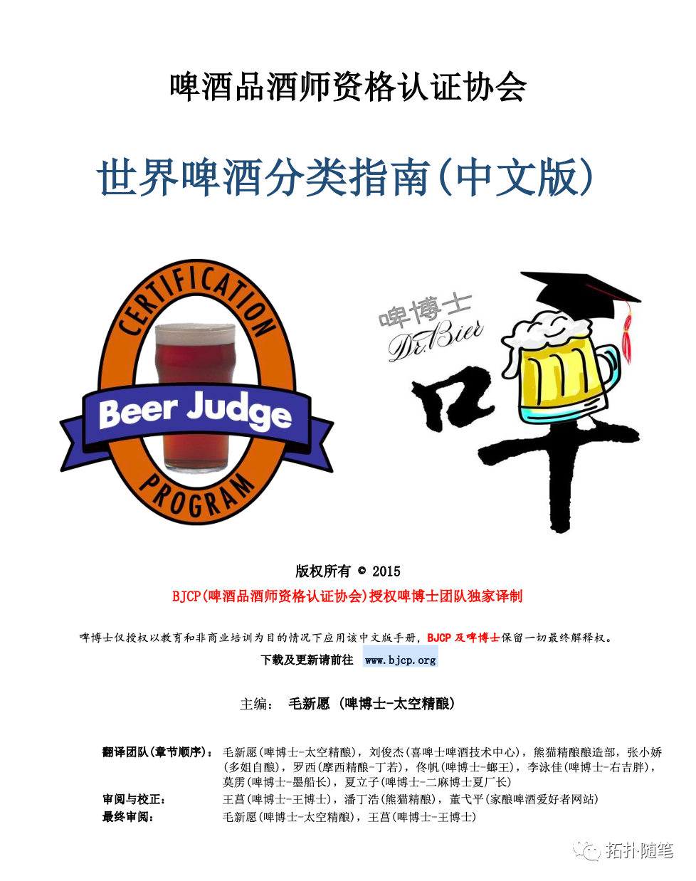 让我们先看看啤酒品酒师资格认证协会出版的《世界啤酒分类指南》,这个由国内的啤博士团队牵头翻译过来,可以起到一个很好的与国际同步的学习资料。