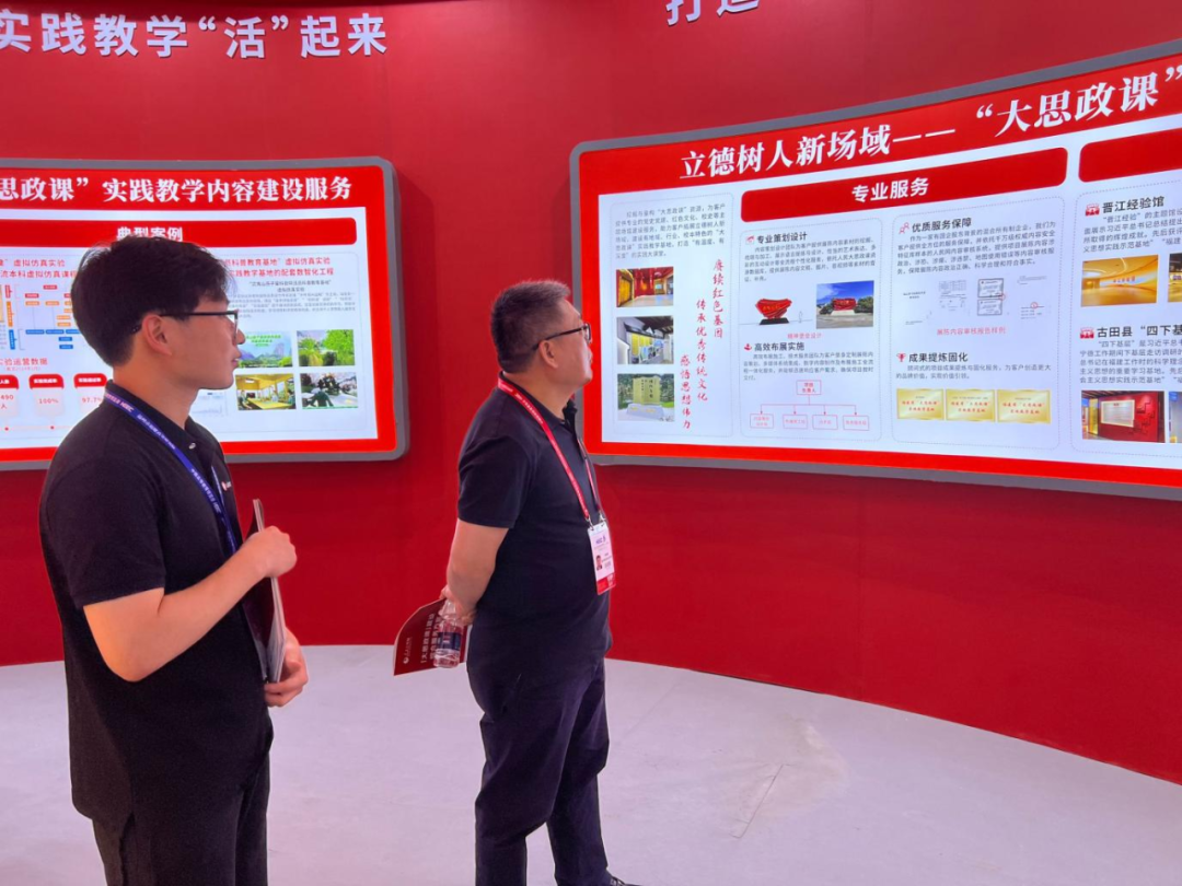 在展览展示区,朱毓高一行重点参观了智慧教育展区,围绕智慧教室建设、思政文科实验室建设以及智慧校园建设等,与参展商及技术人员进行了深度交流,观摩了AR教学演示、沉浸式体验了现代化仪器设备、全方位感受了高等教育领域的创新发展成果。会议期间,朱毓高受邀参加了“高博会赋能地方高校高质量发展”研讨会,与参会人员进行深入交流。