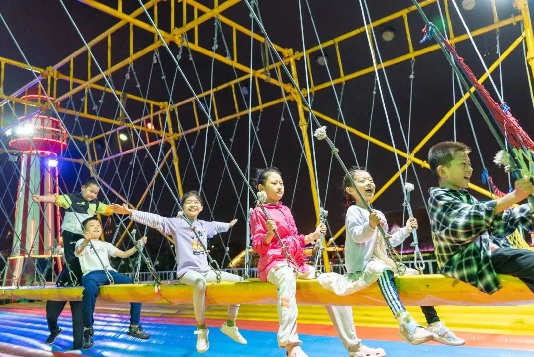 三人旋转秋千、DNA 攀爬网等游乐设施,