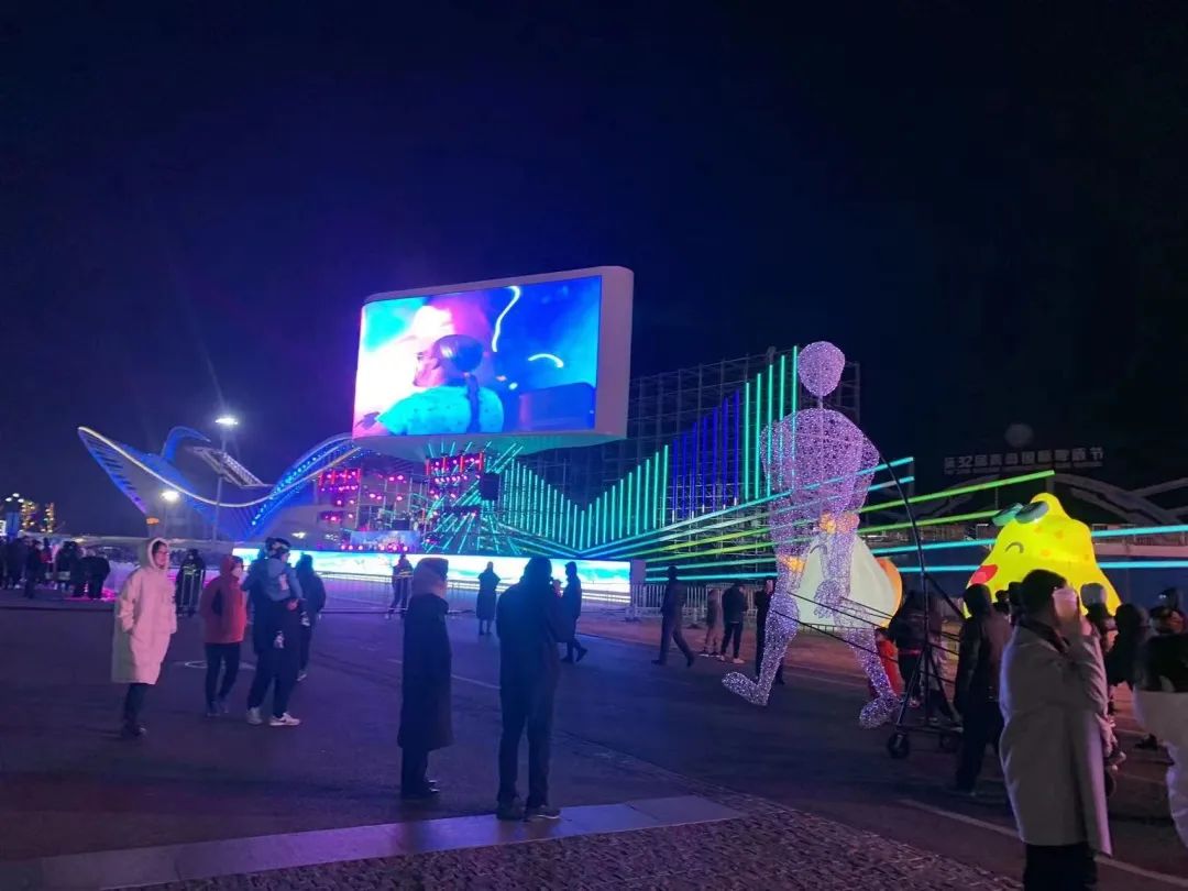 巨型发光人偶优雅穿行于啤酒城中,