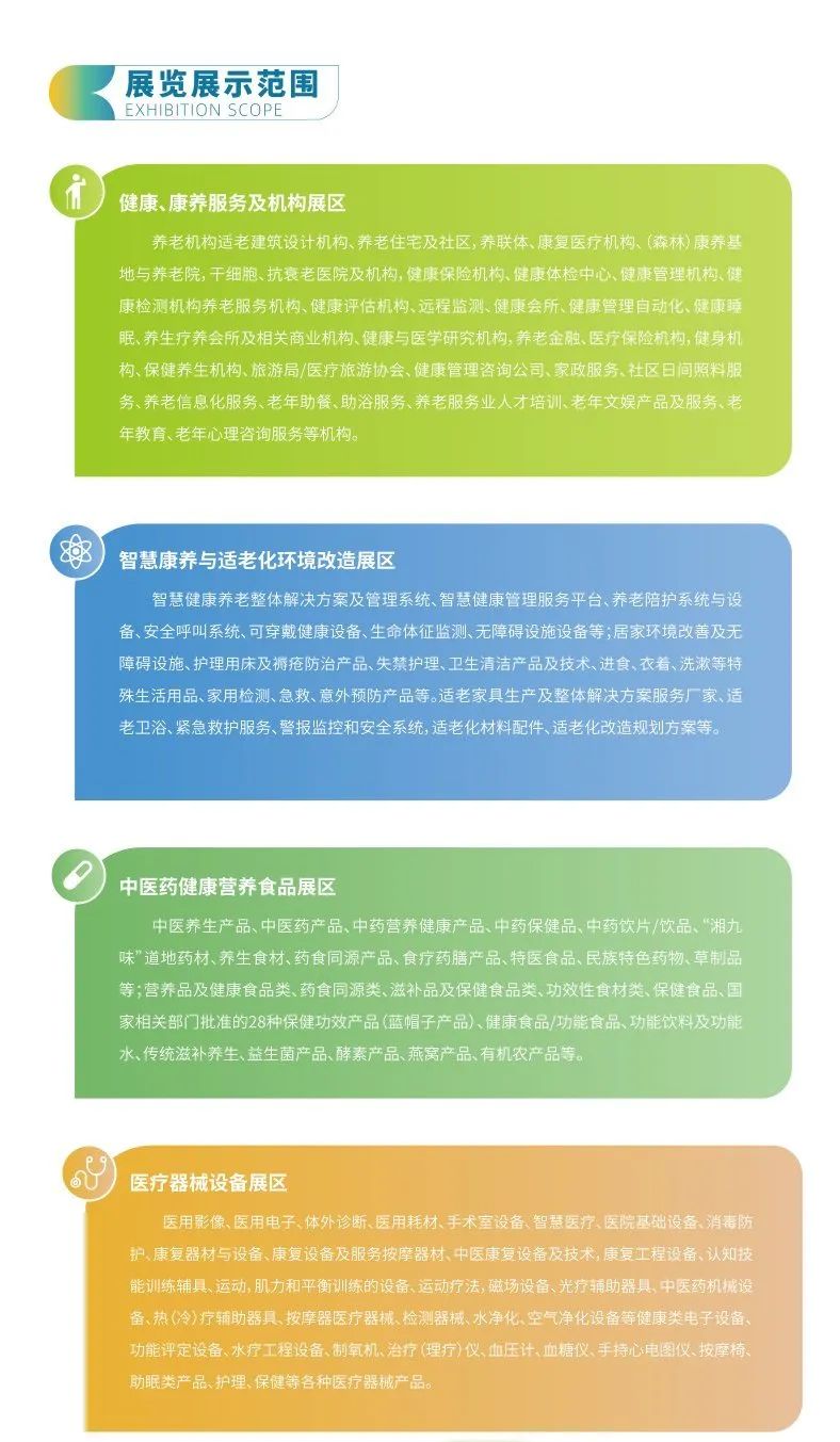 2024长沙国际大健康暨康养产业博览会拟于2024年9月13-15日在长沙国际会展中心举办,规划展览面积50000㎡,设置健康、康养服务,智慧康养与适老化环境改造,中医中药,智慧医疗,医疗器械,制药机械与包装机械,医美美护,成人保健等11大展区;举办20+场论坛及同期活动,预计参展企业500+家,专业观众50000+人次,为打造国际一流品牌展会、千亿大健康产业集群、大健康产业新高地作出新的贡献。