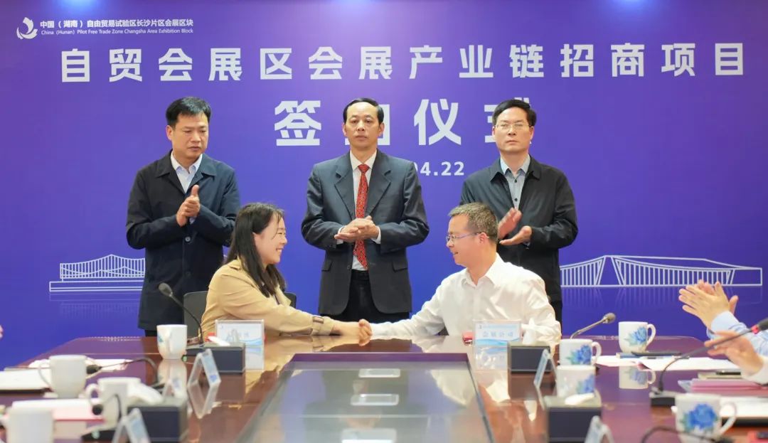 4月22日,长沙自贸会展区“推进会展产业高质量发展座谈会暨会展产业链招商项目签约会”顺利举行。会议由自贸会展党工委委员、管委会副主任姚军主持,自贸会展党工委副书记、管委会主任莫金文,长沙市会展办党组成员、副主任鲁海文,长沙县政府二级调研员范谦,中国会展经济研究会首席研究员、对外经济贸易大学教授博导储祥银等领导出席并讲话!来自涵盖企业、协会、平台、研究机构等众多单位的领导、专家及企业代表齐聚一堂,围绕推进长沙会展产业的高质量发展“望闻问切”,集思广益,对会展产业政策制定、前景目标、合作交流、人才培训、国际接轨等方面进行了深入探讨。